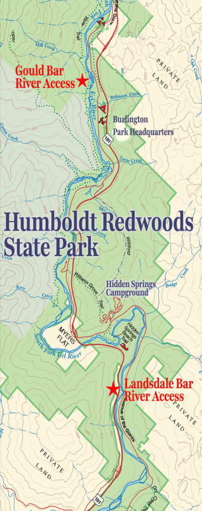 Don’t count on Lyft, Uber, or a friendly river shuttle to bail you out here—this stretch of Humboldt County is blissfully off the grid. There are no commercial outfitters offering shuttle service, and cell coverage is spotty at best.